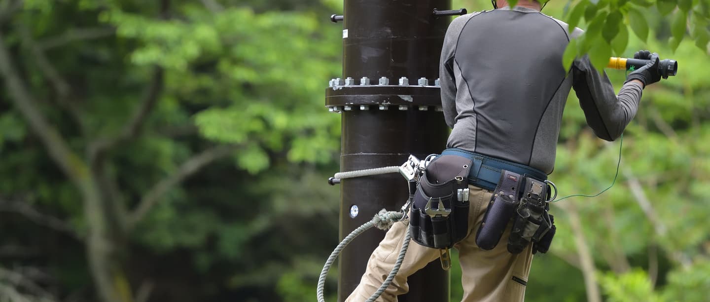 当社は、携帯電話基地局の設置・光ファイバー設置工事・保守メンテナンスを行なっている会社です。