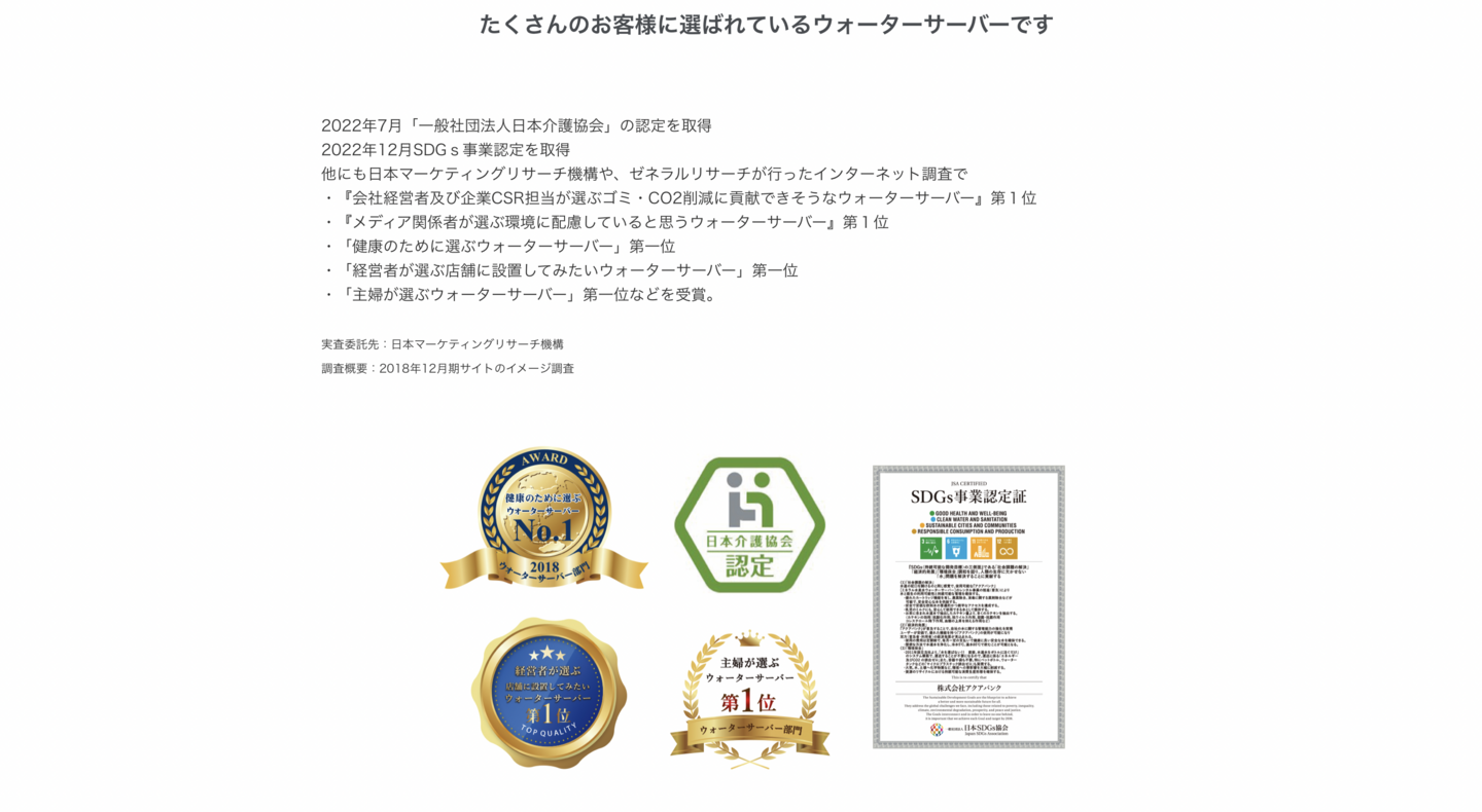 お水を衛生的に保つ抗菌・滅菌機能やフィルター性能、特徴など水質のエビデンスを公開しています。